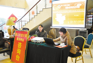 市统计局在政协委员驻地设立服务“两会”咨询台,方便与会人员查阅资料。(记者 沈湛 摄)