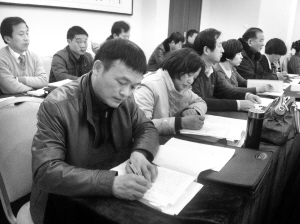 图为与会代表认真学习政府工作报告。(记者 卢好亮 摄)