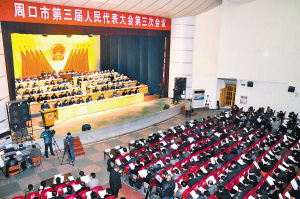 本报讯 (记者 李凤霞) 2月19日上午,周口市第三届人民代表大会第三次会议在周口人民会堂隆重开幕。市长岳文海向大会作政府工作报告。