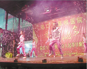 为庆祝元宵佳节,周口耳鼻喉医院于农历正月十五、十六两天晚上,在周口市七一中路举行联欢晚会。周一 摄