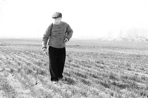 由于目前气温逐渐回升,小麦即将返青、拔节,这也是小麦春季管理的关键时期,项城市通过电视、报刊等宣传方式,发动广大群众早动手,迅速掀起春季农业生产高潮。图为该市农民正在对小麦进行病虫害防治。(赵献伟 摄)
