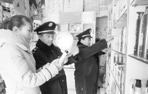 为防止化妆品虚假宣传,太康县工商局加大了对化妆品广告市场的检查力度,对宣传疗效、使用医疗术语等与宣传不符等现象进行严厉查处。图为该县工商局执法人员正在一化妆品店内检查产品说明。
