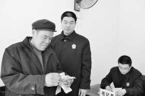 太康县法院妥善办理拖欠农民工工资案件,采取快立、快审、快执等有效措施,切实维护农民工合法权益。图为3月4日,该院法官庭前调解一起农民工讨薪案件,最终被告当庭兑现,原告喜领被拖欠的工资款8000元。(记者 刘俊涛 通讯员 李康 摄)