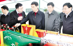 在宋河酒业股份有限公司,王铁一行深入宋河酒业技改项目暨罐装生产基地考察,认真听取企业介绍,深入了解企业情况。王铁指出,鹿邑大曲、宋河粮液等宋河酒知名度很高,在河南甚至全国叫得很响,是中国名酒之一。企业一定要严把质量关,从原料的购进、发酵等关键环节入手,加强企业质量管理。同时,企业还要在高端产品研发上下工夫,向高档酒要效益、要品牌、要形象,向低档酒要市场、要人气、要知名度,多管齐下,做大做强做优,把宋河酒品牌再提升一个档次。