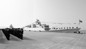 这是3月12日拍摄的我国新型护卫舰首舰——蚌埠舰入列命名授旗仪式现场。当日,我国新型护卫舰首舰——蚌埠舰入列命名授旗仪式在浙江舟山举行,标志着这艘舰正式加入人民海军战斗序列。蚌埠舰是我国自行研制设计生产的新一代轻型导弹护卫舰,集成了多型武器装备,主要担负巡逻警戒护航、单独或协同其他兵力执行反潜作战、对海作战等使命任务。