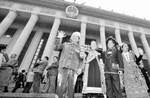 全国政协十二届一次会议闭幕 3月12日,全国政协十二届一次会议在北京人民大会堂举行闭幕大会。这是会议结束后全国政协委员在人民大会堂前合影。