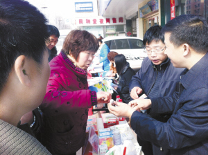 为营造全社会关注食品药品安全社会氛围,提高社会公众饮食用药安全意识,3月15日,周口市食品药品监管局开展食品药品安全3·15宣传咨询活动。图为执法人员现场讲解假劣药品辨别知识。徐义勇 摄