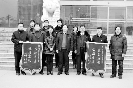 项城市贾岭镇将“尽职尽责 诚信高效”和“秉公办案 公正廉洁”两面锦旗赠送给项城法院。