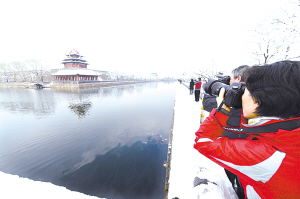 京城雪景引来“拍客”无数 3月20日,摄影爱好者在北京故宫筒子河边拍摄雪景。3月19日夜至20日晨,北京出现明显降雪。 新华社发