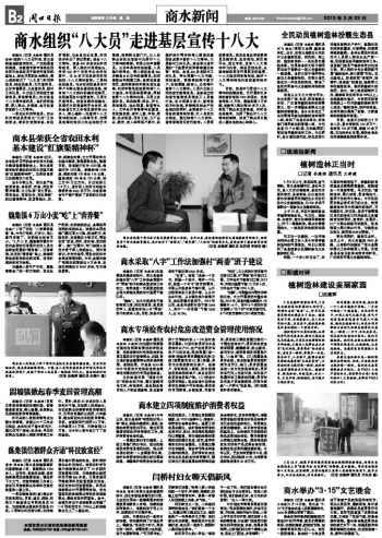 本报讯 (记者 岳建辉 通讯员 张辉)党的十八大召开后,商水县积极创新宣传形式,广泛拓展宣传渠道,在邀请专家学者组成报告团对全县党员干部进行宣讲的基础上,结合不同的社会群体,精心组织培训了“八大员”(科技特派员、邮政投递员、文艺宣传员、公交车售票员、义务宣讲员、驻村工作队员、外出务工流动党支部联络员、网络管理员),作为该县十八大精神宣讲员,他们走进基层,深入群众,多渠道、全方位宣讲党的十八大精神。