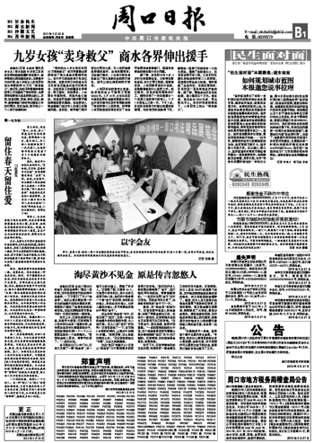 九岁女孩“卖身救父” 商水各界伸出援手
