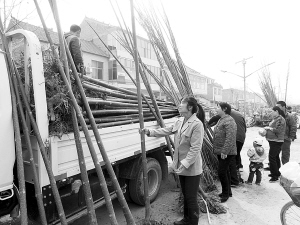 昨日,几位农民正在集市上购买树苗。阳春三月,春暖花开。我市广大农民抓住春天种植树苗的大好时机,积极投入到植树造林当中。