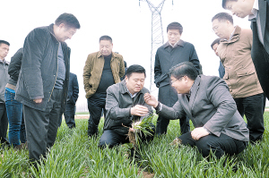 本报讯 (记者 李凤霞) 3月25日下午,市委书记徐光,市委常委、副市长刘保仓,市委常委、秘书长史根治,带领市规划局、市土地局、市发改委、市农业局、市农科院及东新区负责人,深入项目工地、田间地头,调研周口新区建设和全市农业生产工作。徐光强调,新区建设要抢抓机遇突出快,明确任务突出干,科学推进突出效,持续求进,苦干实干,努力开创新区发展新局面。农业生产要抓好麦田管理,提高粮食生产能力,加快发展现代农业,不断提升我市农业发展水平。