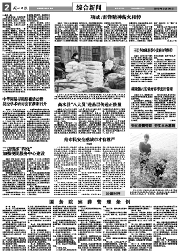 严要求追求实效。该市坚持着眼基层、立足实际,结合机关、企业、学校、人口计生、新农村建设等各项工作,深入开展“学雷锋、树新风”活动,倡导人们从身边的小事做起,从身边的人帮起,开展互帮互助、互敬互爱的中华美德。南顿镇30多名党员干部组成“学雷锋”党员小组,在帮扶农户过程中,弘扬雷锋精神,传递党的温暖,推动中心工作,促进社会和谐。