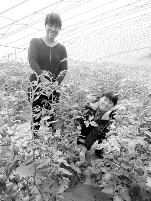 昨日,川汇区一对姐妹正在大棚内管理西红柿。近年来,我市各级政府积极引导农民调整农业种植结构,通过发展日光温室大棚蔬菜等高效农业,让农民走上了一条致富路。(记者 孙安平 摄)