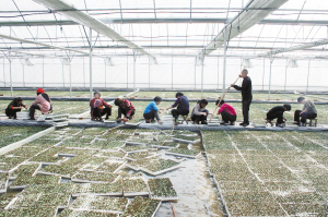 图为商水县袁老乡腰庄村村民正在烟叶育苗大棚里补苗间苗。连日来,该县积极组织技术人员,深入到田间地头指导烟农科学管理烟苗。据悉,该县已建标准化烟叶育苗大棚60多座,可供烟叶移栽面积1万多亩。(刘飞 魏红 摄)