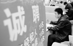 郑州:高校毕业生专场招聘会火爆开场 3月28日,一名求职者在招聘会现场咨询求职。当日,2013年河南省高校毕业生专场招聘会在河南人才市场举办。