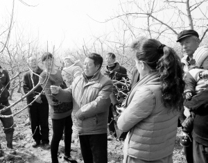 3月26日,西华县林业局组织林业专家在西华营镇为果农进行技术指导。为提高果农效益,该县林业局组织人员向果农现场传授复剪、喷药、施肥等技术,受到了广大果农的欢迎。(王浩 耀光 摄)