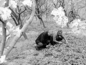在商水县魏集镇工商联的帮扶下,党桥村6组农民王明田在梨树下种植了草莓,l办起了“立体果园”,在不增加占地面积的情况下大幅度提高了经济效益。 ( 苏建广 摄)