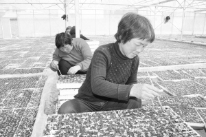 近日,袁老乡腰庄村几名留守妇女正在烟叶育苗大棚里补苗间苗。该县以人口学校、远程教育为平台,通过传、教、帮、带向烟农传授烟叶“水上漂浮育苗”技术,使群众通过科技种烟增收致富。(岳建辉 刘飞 摄)