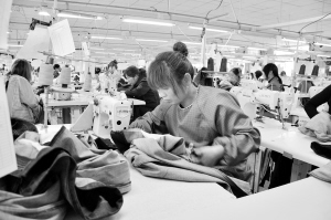 4月10日,周口台南制衣有限公司内繁忙的生产场景。台南制衣落户川汇区产业集聚区以来,产能不断提升,目前生产规模达到年产162万件,主要以来料加工形式生产,产品完工后返销美国、日本、台湾等非配额国家和地区。(樊葩菡 摄)