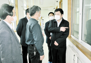 昨日下午,市委书记徐光(右一)到市第五人民医院看望我市H7N9禽流感患者,并详细询问其治疗情况。