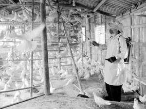 ▲严防禽流感 郑州公园近3000只鸽子被关“禁闭” 4月15日,在郑州市紫荆山公园,负责饲养广场鸽的工作人员在对鸽笼进行消毒。近日,郑州市游人集中的紫荆山公园和绿城广场的近3000只鸽子已停止放养,并采取对鸽笼一天两次消毒、投喂防流感药物等措施,严防禽流感疫情。
