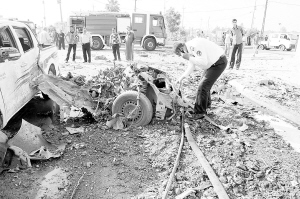 伊拉克各地连遭爆炸袭击伤亡近200人 4月15日,在伊拉克北部城市基尔库克,救援人员查看汽车炸弹袭击现场。 伊拉克各地当日发生多起爆炸袭击,已造成至少16人死亡、170多人受伤。