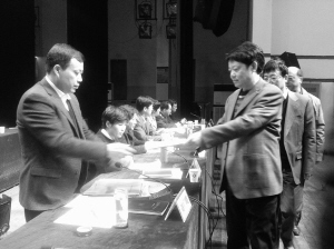 洺南办事处党工委书记张家全向县委书记刘广明递交“两违”治理目标责任书。(记者 卢好亮 摄)
