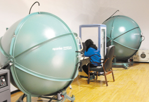图为河南山河光电技术人员在检验新设计制作的无极灯。 山河光电科技有限公司位于市开发区,主要产品为无极灯、LED等。他们设备齐全,研发条件优越。(记者 沈湛 摄)