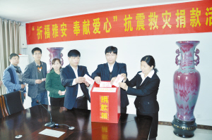 当日上午,周口市房地产协会和周口市住宅产业商会也举行了抗震救灾捐款活动,短短10多分钟就募集爱心款36000元。市房地产协会会长高家魁说:“作为房地产协会和住宅商会,我们将继续呼吁房地产开发企业和我们的会员单位积极行动,奉献爱心,帮助灾区群众渡过难关。”