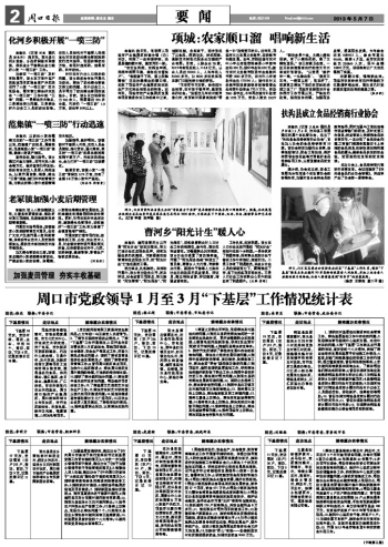 周口市党政领导1月至3月“下基层”工作情况统计表