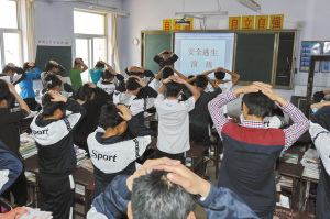 当日,吉林省集安市大路边防派出所民警走进校园,向学生和老师们讲解防震减灾知识,引导师生正确开展防灾自救行动,强化他们在遇到灾害时的应变自救、互救能力。 新华社记者 张楠摄