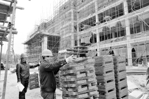 川汇产业集聚区百亨门业建设工地上,高标准生产厂房正在紧张施工。据介绍,百亨门业年产60万镗高档室内门、防盗门生产项目计划新上大型现代化流水线4条,可吸纳安置社会岗位500人,投产后产值可达1.5亿元。(理效明 樊葩菡 摄)