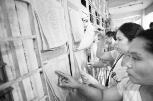 菲律宾中期选举开始 5月13日,在菲律宾首都马尼拉,选民在投票站的登记名册上查看自己的名字。菲律宾中期选举当地时间13日上午7时正式开始,全国4.4万余名候选人将争夺从参议员到乡镇官员等不同级别的1.8万多个岗位。新华社发