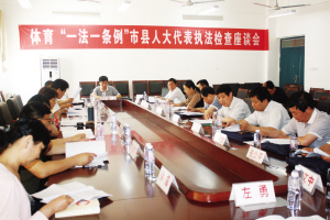 近日,市县两级人大代表检查郸城县体育“一法一条例”贯彻落实情况。(丁超 摄)