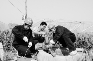 目前,小麦等农作物生产进入了关键时期。为了满足农业经济发展用电需求,西华县电业局员工深入生产一线,为农业丰收提供可靠电力保障。图为黄桥乡供电所员工正在为该乡前石羊村农民维修机井。张猛 张莉 摄