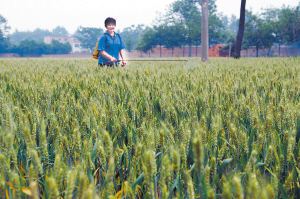 当下,小麦正处于抽穗扬花期,这一时期的病虫害防治是决定小麦产量最重要的关口。5月16日,项城市范集镇的农民正在进行一喷综防作业,预防小麦赤霉病、根腐病和纹枯病等病害的发生。(赵献伟 摄)