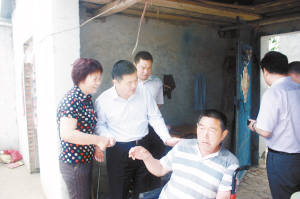 5月23日,川汇区委有关领导和区计生委的同志走访慰问华耀城办事处李楼行政村计生困难户李三领。