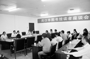 5月26日,周口巿图书馆举办读者座谈会,近30位读者代表汇聚一堂,就图书馆借阅工作和读者关心的问题畅所欲言,提出诚恳的意见和建议。会上,5个优秀读书家庭和10个优秀读者受到了表彰。图为座谈会现场。记者 王映 摄