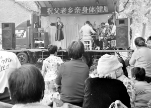 5月23日上午,市委老干部局组织红叶艺术团的部分演员来到商水张庄乡开展送戏下乡活动。据了解,红叶艺术团的演员大多是市直离退休老干部,其中年龄最大的已70多岁。当天,他们准备了十几个节目,精彩的演出博得在场群众的阵阵掌声。记者 王映 摄
