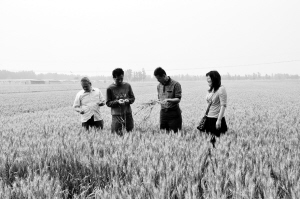 川汇区农林局专家到城北办事处邵寨行政村麦田,现场为农民讲解小麦后期管理技术。(康志堂 陈英 摄)