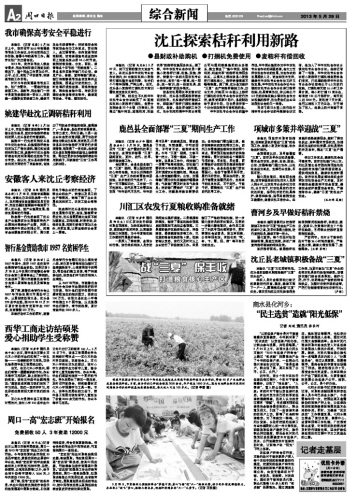 该县农机局局长李友敬向记者介绍,沈丘县为提高秸秆综合利用效率,扎实做好秸秆禁烧工作,积极推广秸秆打捆机械综合利用。县委、县政府创新工作方式,充分利用河南华丰网业有限公司与漯河银鸽集团的业务联系,建立健全了“集中转运、规模利用、利益共享”的秸秆收储服务体系,从根本上解决该县小麦秸秆打捆机械少、秸秆销售渠道不畅等难题。据了解,沈丘县为做好“三夏”生产和秸秆禁烧工作,出台文件,对购买50台套以上秸秆打捆机的农机专业合作社进行扶持,除享受国家补贴外,县级财政给予累计补贴,这也是我市第一个出台该政策并付诸实施的县。