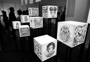 南京艺术学院毕业生作品展吸引用人单位目光 5月28日,用人单位代表和学校师生在毕业生的脸谱图形创意设计作品前参观。当日,2013届南京艺术学院毕业生作品展在学校美术馆开幕,来自美术学院、高等职业学院等院系共30多个专业方向的1000多件本科生和研究生毕业作品参展。作为学校向社会推介人才的平台,此次毕业生作品展免费对外开放,众多用人单位代表应邀前来参观,看作品、论水平、选人才,进行交流洽谈。参展的每件作品前都摆放了标注作者姓名、专业和联系方式等内容的“名片”,以便用人单位进一步联络沟通。新华社发