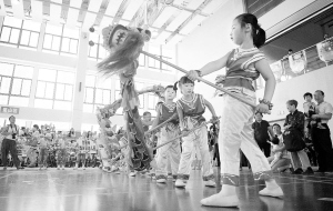 迎“六一”体验传统体育 5月28日,安徽省农业大学幼儿园的小朋友表演民间趣味体育“舞龙”。当日,合肥市首届幼儿迎“六一”民间趣味体育游戏展示活动在合肥市第一中学拉开帷幕,来自50所幼儿园的近千名幼儿展示了8个主题的民间体育游戏和两个特色体育游戏。