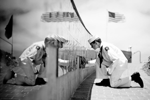哀思 5月27日,在美国加利福尼亚州拉霍亚,一名海军军校学员悼念阵亡军人时擦拭纪念碑。每年5月的最后一个周一是美国的阵亡将士纪念日。新华社发