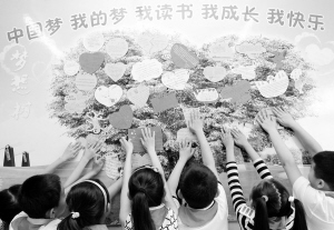 用阅读点亮梦想 5月29日,学生们把自己的读书心得贴到梦想树上。当日,为配合山东省实验小学开展的“我的梦·中国梦——师生共读一本书”主题活动,明天出版社的工作人员带着精心挑选的2000余册优秀少儿读物来到山东省实验小学,以爱心行动鼓励师生们多读书、读好书,丰富知识增强本领,用阅读点亮梦想。 新华社发