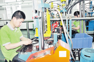 图为沈丘县上海光电科技产业园内的工人正紧张忙碌着。该园区是由企业自主招商、自主管理、自主经营,主要生产通讯设备线缆组件等电子产品,是沈丘县承接东部沿海产业转移企业,又是该县外出务工成功人士回乡创业的典型企业。(记者 王映摄)