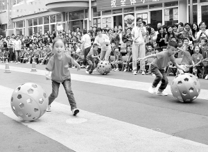 左上图:市直幼儿园举行趣味运动会。(记者 李寒 摄)