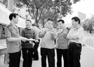 近日,扶沟县工商、公安两部门联合开展打击假冒伪劣商品宣传活动。活动中,采取现场咨询、发放资料、制作宣传板报等形式,重点宣传与人民群众切身利益密切相关的打击生产、销售伪劣产品违法犯罪等相关法律知识。图为联合工作人员正在现场解答群众咨询。